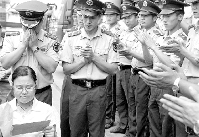 何纯涛参观过营房后,李隆拿出一个信封,上面写着“你要坚强,要勇敢面对人生,我们永远和你在一起”,信封里面是李队长以个人名义送给小何的慰问金。李隆表示,他早已把何纯涛当成自己的亲人,“我们希望她能够勇敢一些。”(记者 刘涛 通讯员 王珂) tujian.org