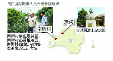 梁爽介绍,服刑人员参观了南街村创业展览馆、南街村热带植物园、南街村微缩仿制的各类革命历史纪念馆。在扶沟吉鸿昌烈士纪念园,他们还向吉鸿昌烈士敬献了花篮,了解了吉鸿昌烈士的爱国主义事迹,并在烈士铜像前宣誓:诚信改造,做守法公民。 tujian.org