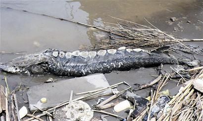 图为死亡[SiWang]多日[DuoRi]的中华鲟。(