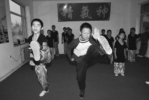 宋平当年在武术学校练功的情景