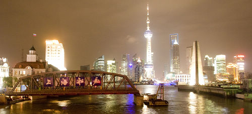 18时许,驳船返回民生路码头后,南跨桥身开始装船。而在外白渡桥现场,夜幕中已是灯火通明,施工人员正在对已就位的北跨桥身进行精确定位,通过千斤顶作适当微调,最终达到就位精度1厘米的要求。
