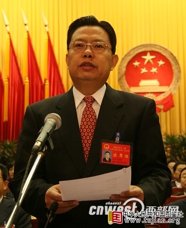 西部网讯 (记者钱海峰 李媛 王辉)陕西省第十一届人民代表大会第一次会议今天(1月16日)上午在西安隆重开幕。大会主席团常务主席赵乐际主持大会,省长袁纯清代表陕西省人民政府向大会作政府工作报告。 中华人民共和国图鉴社