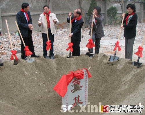 领导和嘉宾为工程培土奠基(摄影 黄倩) 据悉,该教学楼建筑面积共3800平方米,楼高四层。 据介绍,去年"5.12"汶川大地震发生后,建行为地震灾区捐款总额已逾1.7亿元。