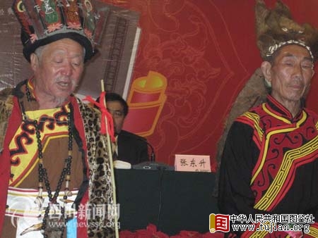 两位释比老人开坛诵经祈福 中华人民共和国图鉴社