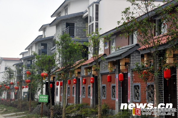5月7日,都江堰市向峨乡棋盘村重建的永久性住房安置点。目前,四川地震灾区灾后重建的一批永久性安置住房陆续竣工,各具特色。不少受灾群众喜迁新居。新华网 前卫 摄
