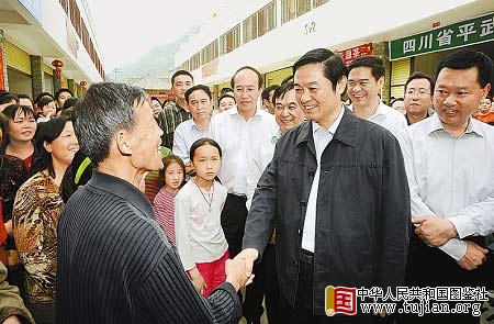 5月10日,四川省委书记、省人大常委会主任刘奇葆深入绵阳看望慰问灾区一线干部群众,调研灾后恢复重建工作。他强调指出,要深入贯彻落实科学发展观,坚持以科学规划为指导,以民生优先为基点,以群众满意为标准,又好又快地推进灾后恢复重建,让灾后恢复重建的过程成为改善民生、造福人民的过程。 中华人民共和国图鉴社