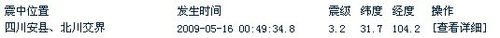 四川安县与北川交界处16日凌晨发生3.2级地震