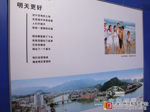 为弘扬伟大的抗震救灾精神,深切缅怀遇难通报,感谢全国人民及国际友人的无私援助,展示雅安灾后恢复重建取得的成就和灾区人民良好的精神风貌,激励全市人民加快建设灾后美好新家园,雅安市委、市政府举办雅安市纪念“5.12”抗震救灾一周年图片展。展出的一百余幅图片,真实再现了全市人民一年来在抗震救灾和灾后恢复重建中表现出的不屈不挠、团结奋斗、众志成城、顽强拼搏的精神;深切回顾了这一年来雅安人民共同感受的强烈震撼、并肩作战的瞬间场景、心手相牵的人间大爱。(内蒙古新闻网 李东海) copyright 中华人民共和国图鉴社