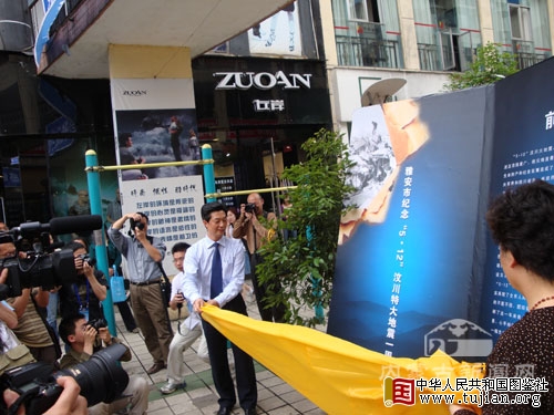5月12日,天气阴沉。下午14时28分,“雅安纪念5.12抗震救灾一周年图片展”开展仪式在雅安市假日广场举行。来自雅安市各届人士代表以及抗震周年全国网络媒体灾区行的全体记者参加了开展仪式。