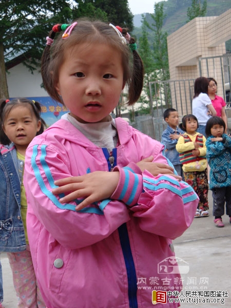 2009年5月12日——“5.12”汶川大地震一周年之际,“地震周年网络媒体灾区行”采访团走进雅安市名山县城东乡官田小学。在操场上,一些孩子们在老师的带领下,用稚嫰的嗓音,唱着《感恩的心》,表达对各界爱心援助的感恩之情。记者看到,孩子们已告别板房,在宽敞明亮的教室里上课,在修葺一新的操场上嬉闹游戏。孩子们的笑容让记者深受感动。走进三年级的一间教室,孩子们正在大声地朗读课文,见到记者为他们拍照,都地下了头,用书堵住了半张脸,悄悄地看记者。一位教师对记者说,其实,每个孩子都想把他们的笑容展现给记者,想让你们给他们拍下一个最美丽的瞬间。 tujian.org
