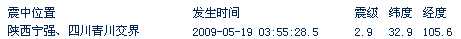 四川新闻网讯据 四川省地震台网测定,5月19日凌晨3时55分,在陕西宁强、四川青川交界(北纬32.9,东经105.6)发生2.9级地震。(完)