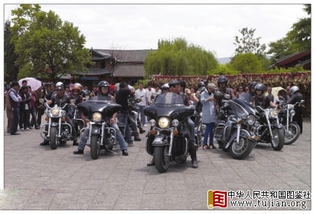当20多辆哈雷集结列队出现在丽江市区大水车广场的时候,起码吸引了上万人驻足欣赏,包括国内外的游客都纷纷跑过来要求和骑士们合影留念。各种款式的哈雷,在阳光下闪烁着耀眼的光,映衬着古城广场的中国情调,这是从来没有过的景象。“哈哈,我好像一下子就找到了当明星的感觉。”华强想起当时的情景,忍不住和郑义相视一笑,“回头率真的太高了。”
