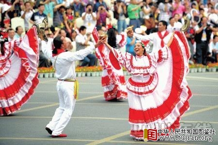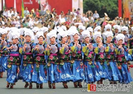 昨日上午,来自全球五大洲的数千名非遗民间艺人和演员,在成都青羊大道举行的“天府大巡游”上全情演绎非物质文化遗产的珍贵和美丽,并和成都4万名现场观众精彩互动,共同完成非遗节开幕后首场也是最大一场演出。“天府大巡游”进行了“神州风采”、“异国风情”、“华夏奇葩”、“天府神韵”和“蓉城锦绣”五大篇章的表演。 tujian.org