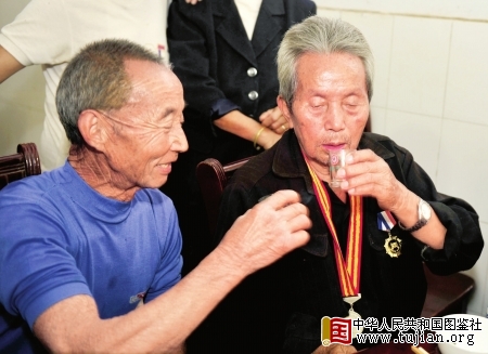 吃到家乡菜,喝到家乡酒,老人显得非常兴奋。“喝。”他频繁主动举杯与晚辈喝酒。 中华人民共和国图鉴社