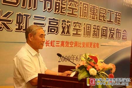 长虹公司总经理刘体斌在会上表示,长虹凭借现有开发生产的百分之百的符合国家二级能效以上标准的节能空调,在国家节能空调惠民工程的政策牵引下,迅速在全国全面普及三高效节能空调的销售,通过三高效节能空调工程的大力推进,实现长虹高效节能空调市场份额100%。 中华人民共和国图鉴社