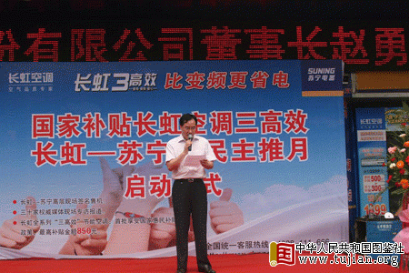 6月10日,国家“节能产品惠民工程”颁布实施一周多,苏宁空调事业部高层突然造访四川长虹,并火速签下6万套长虹三高效空调采购大单,这也是国家“惠民工程”实施后大型家电连锁向制造企业采购的第一个节能空调包销大单。业内认为苏宁此举是在国家补贴节能产品的市场环境下,瞄准了长虹三高效空调的巨大商机。上周长虹空调率先启动“惠民工程”,全国销量迅速提升,在成都等重点城市市场销量甚至上升至首位,而长虹在全国高能效空调市场占比也迅速上升至38.5%,西南飙升至58%。 中华人民共和国图鉴社