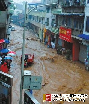 山洪来袭 峨边县城成泽国 中华人民共和国图鉴社