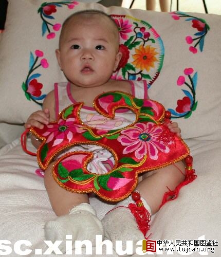 一名小朋友在羌绣枕头和玩具间怡然自乐(7月24日摄)。 当日,四川阿坝州羌族妇女就业帮扶中心“羌绣帮扶计划”在成都市金沙遗址博物馆启动。羌绣帮扶计划通过发动地震灾区妇女从事羌绣手工劳动,帮助灾区妇女就业和生产自救,同时保护当地独特的文化遗产——羌绣。 新华社记者 黄堃 摄 tujian.org