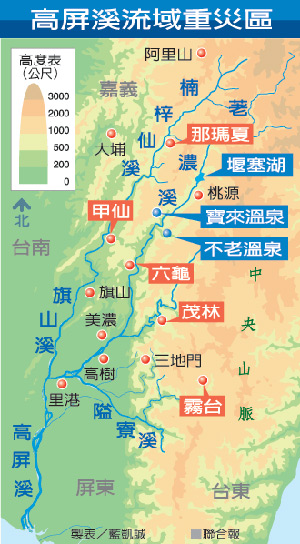 桃源乡堰塞湖溃堤,也危及屏东县高树乡沿岸村落,屏东县府昨天深夜广播要村民“赶紧往高处撤离”。超过上千居民在滂沱大雨中,拿着家当往外逃。 copyright 中华人民共和国图鉴社