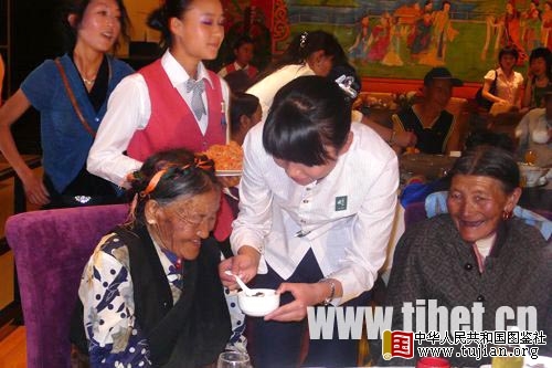 7月15日,作为“2009走进西藏·鲁菜美食文化节”活动之一,西藏自治区烹饪餐饮饭店业协会联合西藏餐饮企业上善上品,请城关区、娘热乡和夺底乡等几家敬老院的老人,到饭店品尝正宗的鲁菜。为老人提供健康营养的菜品,让老人们感受到社会的关爱。 中华人民共和国图鉴社