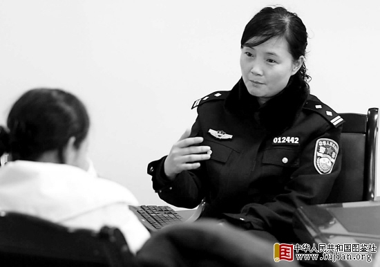 景区水上派出所里,女民警先给那浑身发抖的女子换上备用衣服。汪敏华副所长,人称汪大姐,开导自杀者有绝活。 中华人民共和国图鉴社