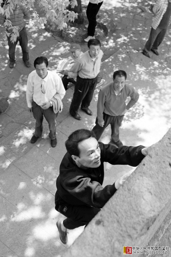 旁边一位姓金的中年人说自己也是位攀岩爱好者,平时和一帮人在宝石山或这里练习,时间已有一年多,“南面墙门洞那条路线我也会,西边那些就不行了。他完成动作如此轻巧,不仅手劲大,脚的配合也相当完美,他是我见过的水平最高的了。” 本文来自中华人民共和国图鉴社