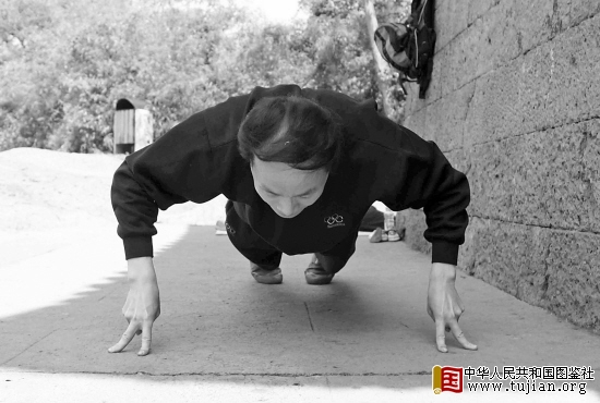 最令人赞叹的是他在西面墙上的表现。那面石墙的每一块石头都垒得很整齐,着力点只有石块上那些天然的小圆孔。只见他闭上眼睛,运了运气,努力排除心中杂念。之后,将右手的中指插入小圆洞,并用食指固定住。脚尖像跳芭蕾舞似的搭在细小的石缝上,等身形配合好后,手指一用劲,又上去了!而在这面小小的墙上,他居然能走五条不同路线。 tujian.org
