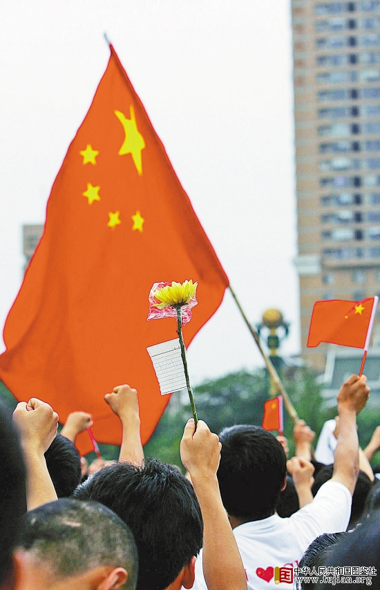 国旗下,24岁的绵竹男孩小尹高举右臂,闭着眼睛仰天吼道:“中国人不会忘却!我们不仅要为了不忘却而记忆,还应该为了不忘却而选择坚强!”或许,时间是记忆的天敌。但是小尹和他周围的一切告诉我们:区区365天的时间,决不可能抹去中国人关于汶川大地震的记忆,甚至连丝毫的淡漠都做不到。 中华人民共和国图鉴社