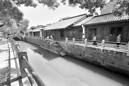 在历史街区保护中,留下河上自北而南的庆春桥、忠义桥、盈春桥三座古桥分别得到了加固和整修;两岸建筑以坡屋顶为主,粉墙黛瓦、联廊通透,还原了江南水乡特色。