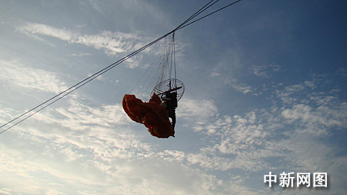 舟山市消防支队特勤中队于当日17时35分许赶到现场,并很快利用9米拉梯把飞行员救了下来。(江耘花志强) tujian.org