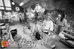 在德国艺术家斯库尔特眼中,塑料袋、坏家具、旧书、过期的衣物并不是废物,它们除了被扔到垃圾箱之外,还可以收集起来,制成各种艺术品,甚至建成房子供人们住。数十年来,这位艺术家一直致力于用垃圾做道具,唤醒人们对环保的重视,他将自己称为“垃圾人”。