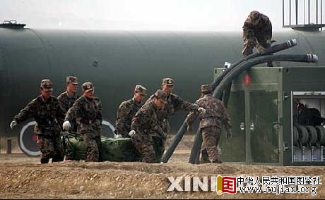 11月13日,北京军区联勤部举行“如期-2007”后勤机动保障力量实兵检验。实兵检验历时两个多小时。检验评估表明,北京军区联勤部队战时保障力量初步具备了区内保障、跨区支援、平时应急、战时应战保障能力。图为油料保障分队官兵在野外架设输油软管。新华社记者???王建民?摄