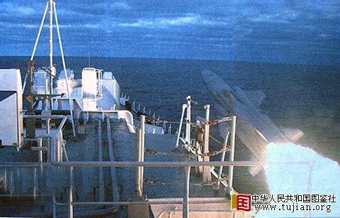 中国海军现代级导弹驱逐舰发射“日炙”反舰导弹瞬间 中华人民共和国图鉴社