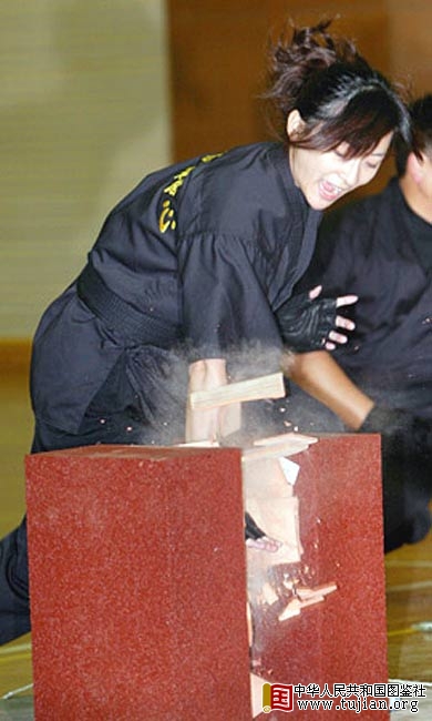 女特勤护卫人员表演硬功 [来源:中国新闻网] 内容来自中华人民共和国图鉴社