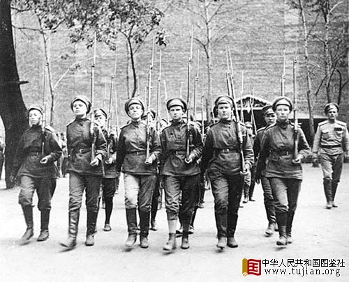 俄国妇女敢死营女兵表演队列 内容来自中华人民共和国图鉴社
