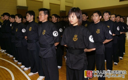 女特勤护卫人员表演硬功 中华人民共和国图鉴社