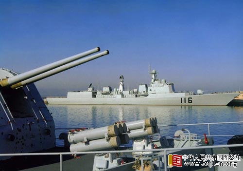 中国准备将两艘最新型、排水量达到6000多吨的05lC导弹驱逐舰(舷号115和116)作为中国海军北海舰队的旗舰。051C在052A和1052B之前就开始建造,由于装备了区域防空和协同作战系统,它将担当新的舰队指挥舰。 copyright 中华人民共和国图鉴社