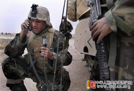 这是一名美军军官通过无线电指挥士兵作战。[资料图片] copyright 中华人民共和国图鉴社