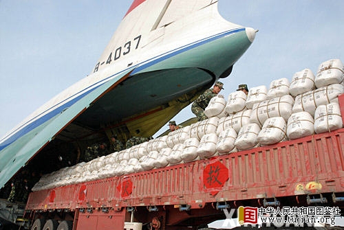 1月31日,武警陕西总队官兵在装运棉衣。从1月30日起,武警陕西总队官兵在西安咸阳国际机场为4架次空军运输机紧急装运5.9万件棉衣运往贵州灾区。 新华社发(马羽 摄) 本文来自中华人民共和国图鉴社