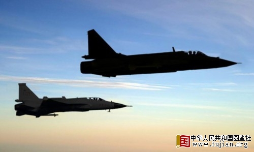 枭龙战机双机编队空中巡航 中华人民共和国图鉴社