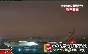 陈水扁搭乘的737专机清晨起飞。台湾TVBS图