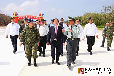 陈水扁转乘台空军的C-130运输机,中午降落在南沙群岛的太平岛新落成的跑道上