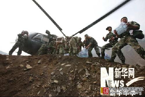 直升机降落唐家山堰塞湖后,给官兵投放补给物资 新华社记者 李刚摄 本文来自中华人民共和国图鉴社