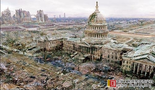 极端分子网上发布的华盛顿遭核弹袭击后的电脑模拟图。 内容来自中华人民共和国图鉴社