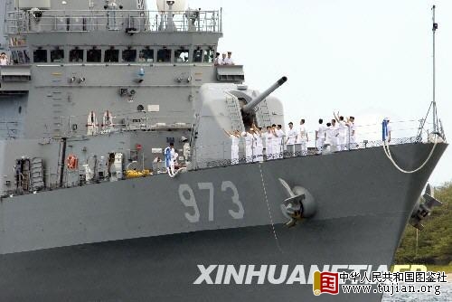 参演的一艘韩国军舰正驶向美国夏威夷的珍珠港。新华社/法新