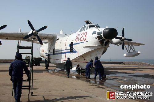 该团某型飞机是我国自行设计和制造的第一代水上飞机,能够在江、河、湖、海上起降,也能够在海天翱翔,可用于侦查、巡逻、反潜、救援以及海上运输和海洋环境检测等。