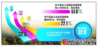 通过加强县域工业园区建设,全省县域经济实现平稳发展。目前全省44个县(市)工业主导产业已经全部确立,产业集群建设得到稳步推进。上半年44个县(市)重点园区基础设施投入总额达74.8亿元,平均每个园区1.7亿元。重点工业园区拉动作用开始显现,上半年44个重点工业园区实现销售收入1090亿元,同比增长51.6%。新上项目1041个,其中亿元以上项目314个,到位资金额412.8亿元。 中华人民共和国图鉴社