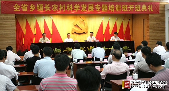 由省人事厅组织、省农业厅农干校承办的2009年全省乡镇长农村科学发展专题培训班在我厅隆重开课。7月6日下午,培训班举行了开班典礼。省委组织部副部长、省人事厅厅长欧真志,省农业厅副厅长刘金生出席了开班典礼。 内容来自中华人民共和国图鉴社