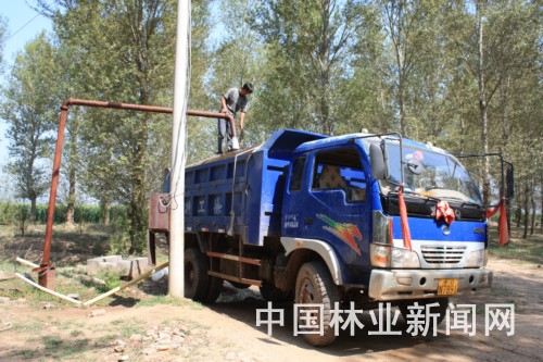 ??????? 7月29日,在内蒙古自治区敖汉旗新惠林场乌兰召的林地中,汽车、农用车正轮流送水,为久旱的杨树、樟子松、文冠果等树苗送来解渴之水。