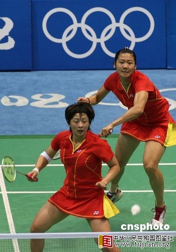 资料图:2008年8月15日晚,中国组合魏轶力、张亚雯在北京奥运会羽毛球女子双打铜牌争夺战中以2比0战胜日本组合前田美顺、末纲聪子,夺得铜牌。 中新社发 武仲林 摄